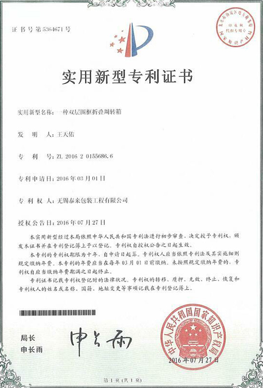 雙層圍框折疊周轉(zhuǎn)箱實(shí)用新型專利